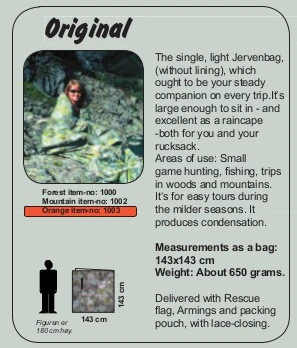Jerven est une entreprise norvégienne qui fabrique des sacs de protection pour les pratiquants d’activités de pleine nature : randonneurs, pêcheurs, chasseurs… Le Fjellduken Original est utilisé par les chasseurs et l’armée norvégienne depuis plus de 30 ans.