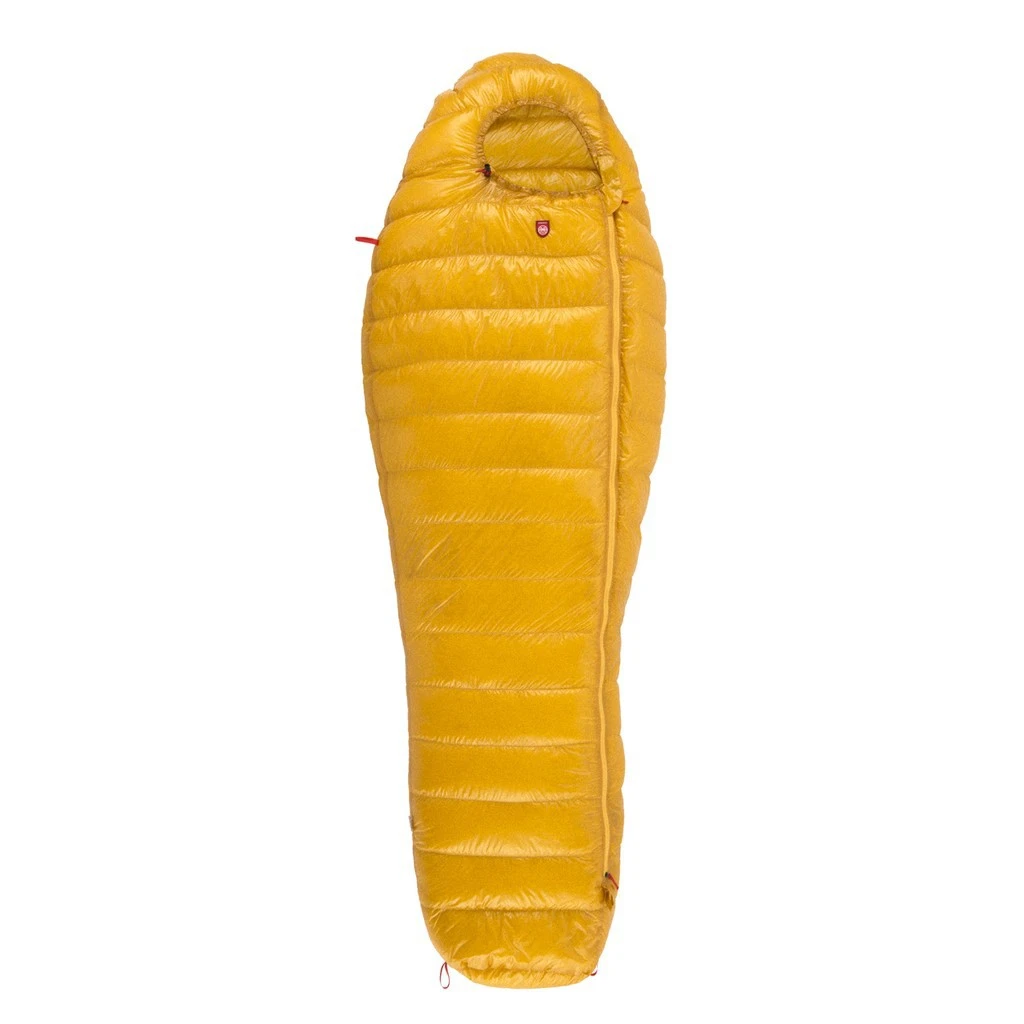 Il est doté d’un garnissage en duvet d’oie polonais 900 cuin, répartition 95/5. L’enveloppe en Gelanots Ultra Light Ripstop Shella a subi un traitement hydrophobe tout en laissant le tissu respirer (évacuation de la condensation). La construction cloisonnée en Z évite les ponts thermiques et maximise l’isolation.