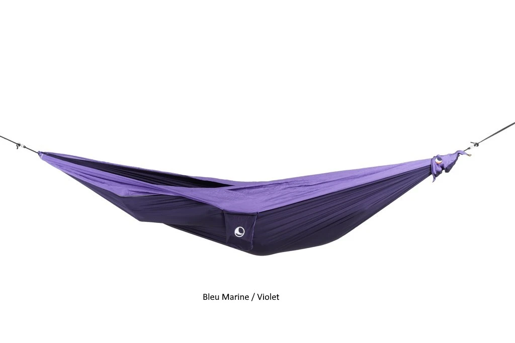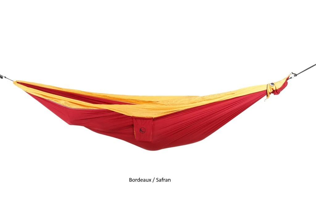 Le Hamac Original de Ticket to the Moon est fabriqué en toile de parachute : 100% nylon. Ses larges dimensions de 320 x 200 cm permettent d’être confortable installé.